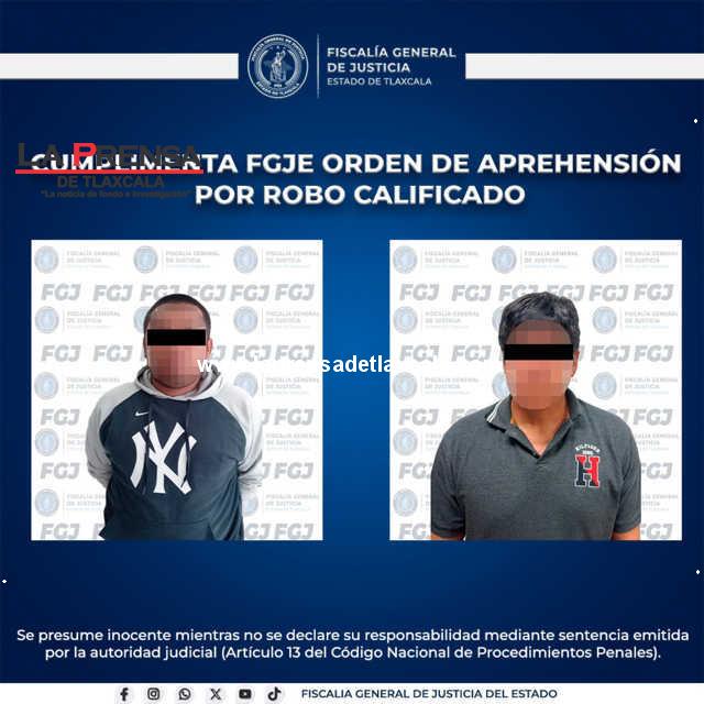 Elementos de la Policía de Investigación de la Fiscalía General de Justicia del Estado (FGJE) cumplimentaron una orden de aprehensión en contra de Diego N., y Refugio N., por el delito de robo calificado.