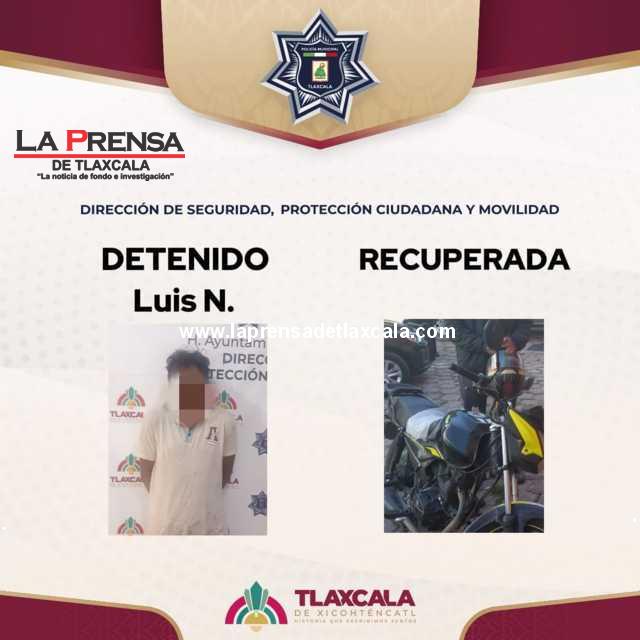 La tarde del miércoles, un ciudadano reportó al sistema de emergencias el robo de su motocicleta Italika FT150 color negro con amarillo, que había dejado estacionada en la calle Diego Muñoz Camargo, colonia Centro. De inmediato, los efectivos policiales iniciaron el rastreo a través del C2 y mediante las cámaras de videovigilancia se ubicó al vehículo sobre la explanada del mercado y posteriormente cerca de la ex astabandera.