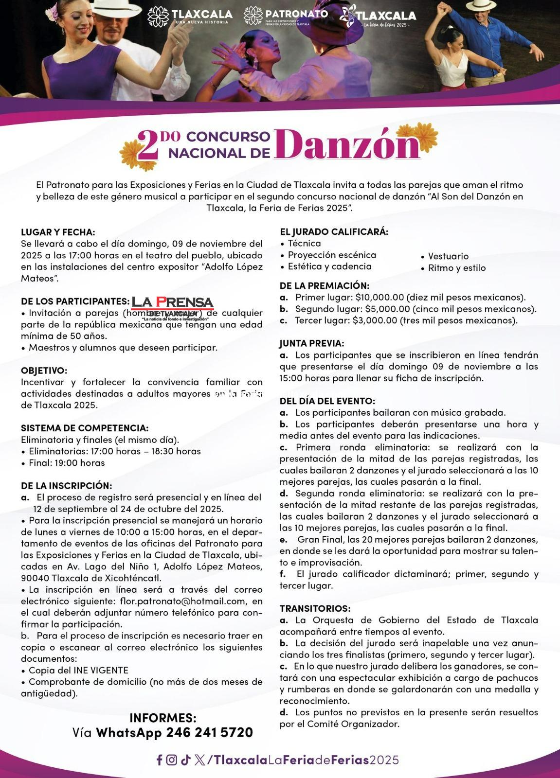 La “Feria de Ferias Tlaxcala 2025” lanzó las convocatorias para tres de sus concursos más esperados: gateo, danzón y carrera de botargas, eventos que fusionan tradición, alegría y participación ciudadana.
