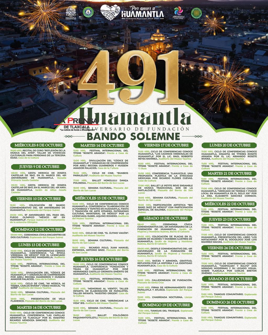 El H. Ayuntamiento de Huamantla, que encabeza el presidente municipal Salvador Santos Cedillo, invita a toda la ciudadanía a formar parte de las actividades conmemorativas por el 491 aniversario de la fundación de Huamantla, una celebración que honra nuestras raíces, tradiciones y el orgullo de ser huamantlecos.