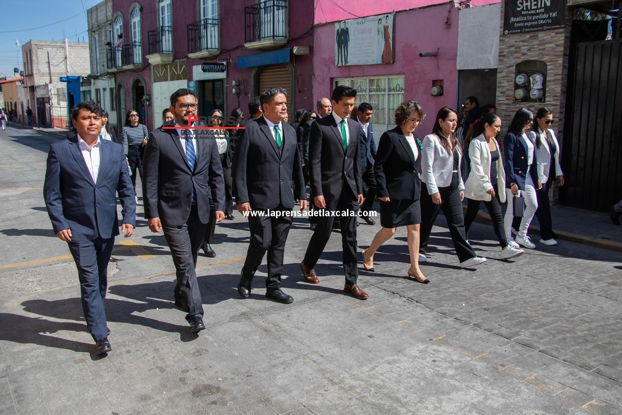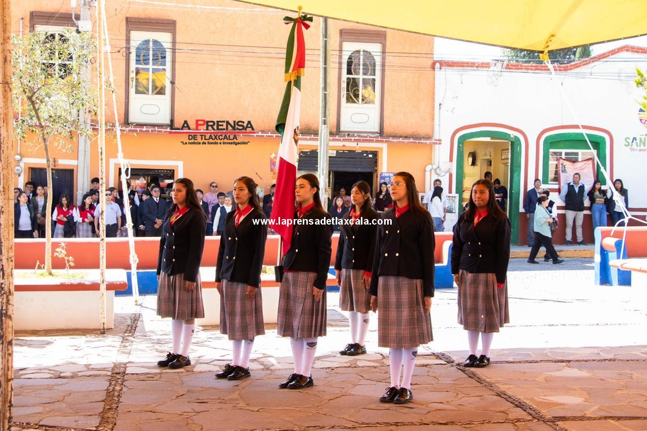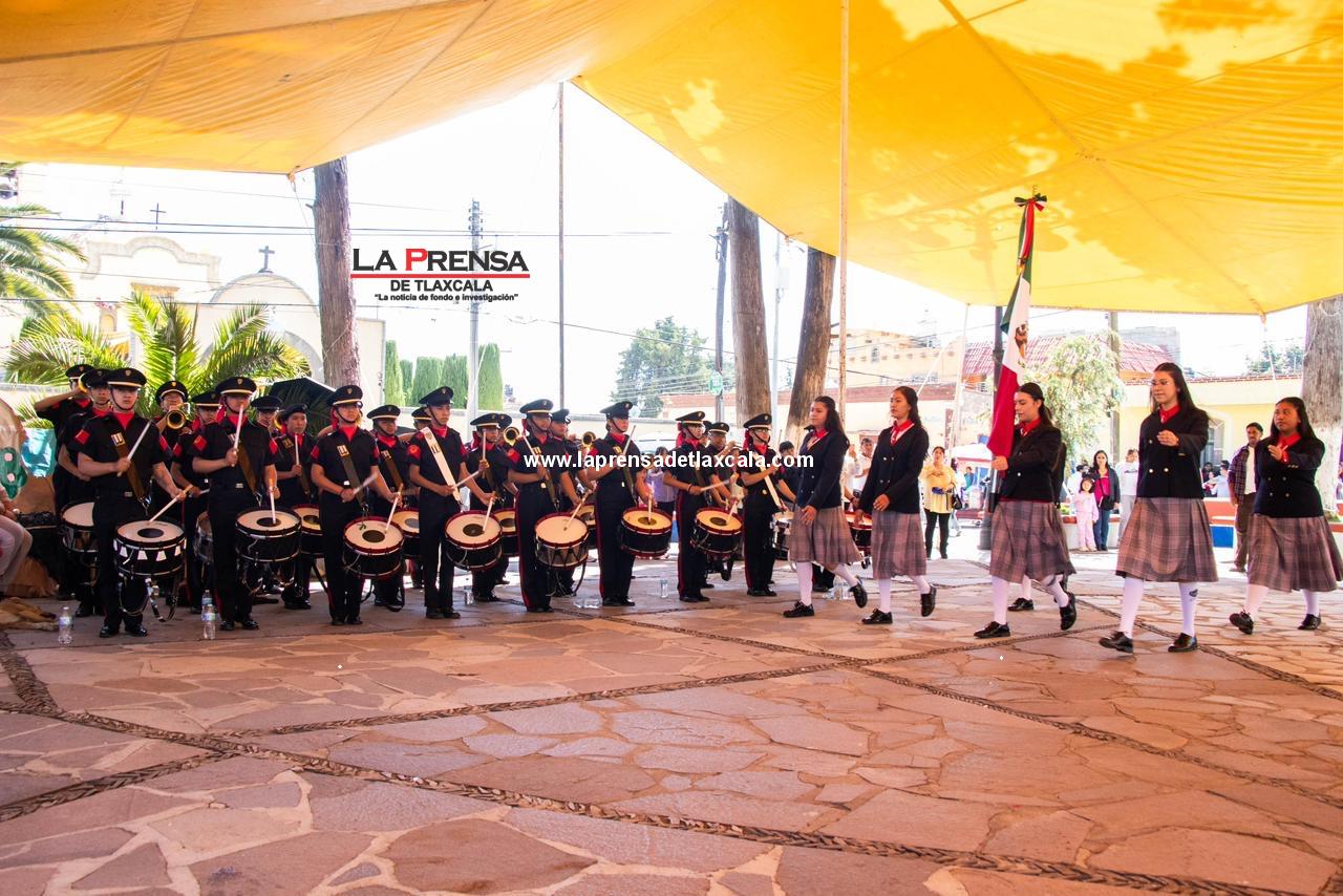 Posteriormente, el contingente avanzó por las principales calles hasta llegar a la Plazuela del Barrio de San Lucas, sede del acto cívico conmemorativo, donde se rindieron honores al Lábaro Patrio y se destacó la grandeza cultural, histórica y social de Huamantla.