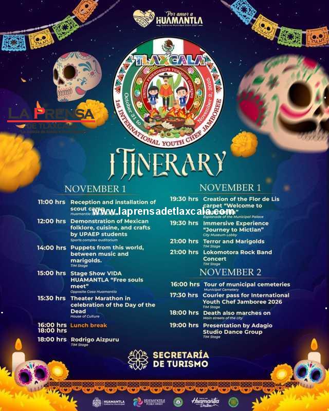 El gobierno municipal de Huamantla, que preside Salvador Santos Cedillo, dio a conocer el itinerario oficial del International Youth Chef Jamboree 2025, evento internacional del Movimiento Scout Mundial que tendrá como sede de apertura al Pueblo Mágico de Huamantla del 1 al 2 de noviembre de 2025.