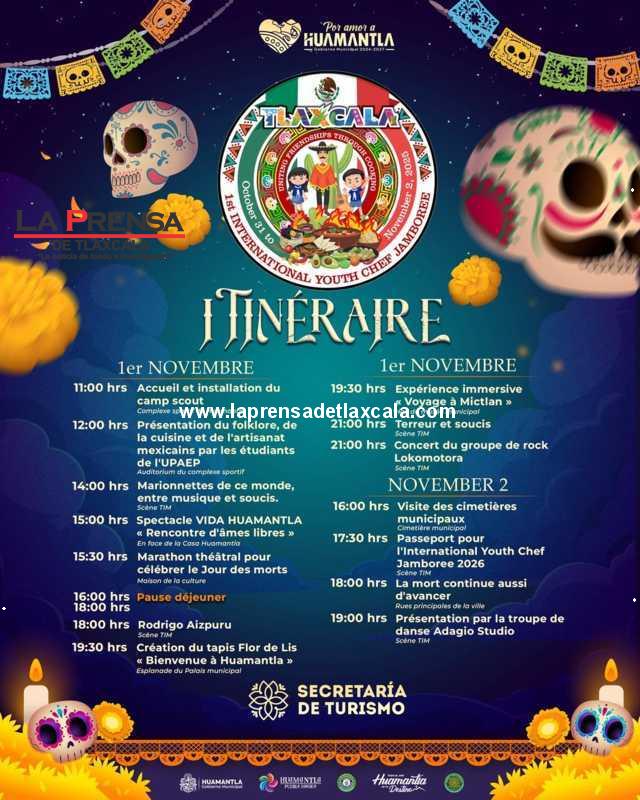 El gobierno municipal de Huamantla, que preside Salvador Santos Cedillo, dio a conocer el itinerario oficial del International Youth Chef Jamboree 2025, evento internacional del Movimiento Scout Mundial que tendrá como sede de apertura al Pueblo Mágico de Huamantla del 1 al 2 de noviembre de 2025.