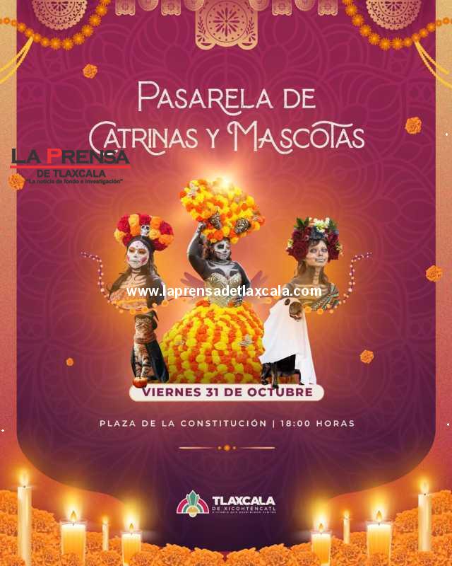 El Ayuntamiento de Tlaxcala, a través de la Coordinación de Turismo, invita a la ciudadanía en general a participar en una tarde llena de color, alegría y tradición con la Pasarela de Catrinas y Mascotas, que se llevará a cabo este viernes 31 de octubre en la Plaza de la Constitución a las 18:00 horas, como parte del “Festival de la Vida y la Muerte 2025”.