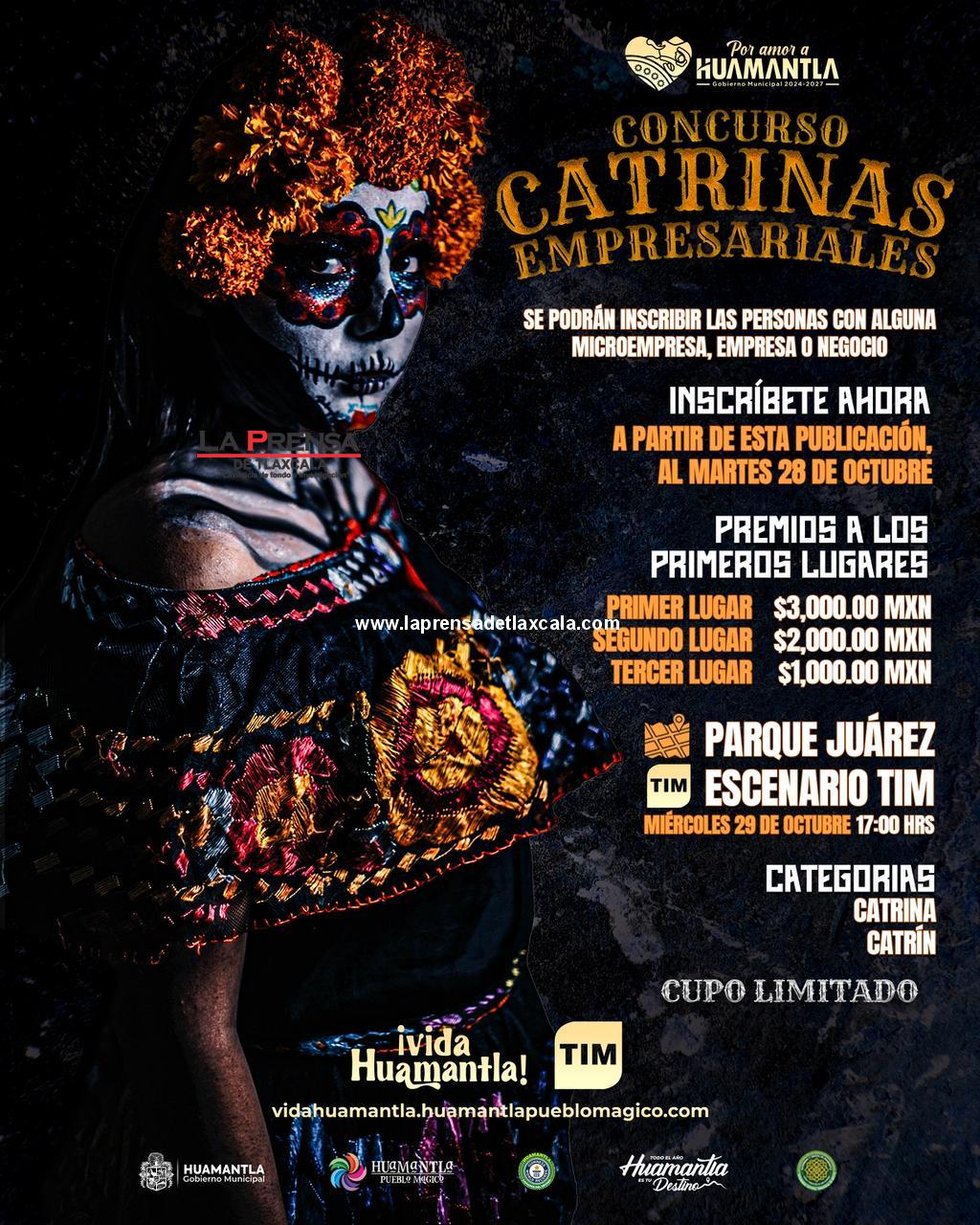 El H. Ayuntamiento de Huamantla, a través de la Coordinación de Juventud y la Coordinación de Desarrollo Econòmico, invita a todas las empresas, negocios y comercios del municipio a participar en el Concurso de Catrinas Empresariales, como parte de las actividades del programa Vida Huamantla 2025, con el propósito de promover nuestras tradiciones y fortalecer la identidad cultural de nuestra ciudad.