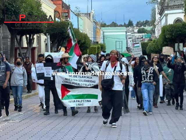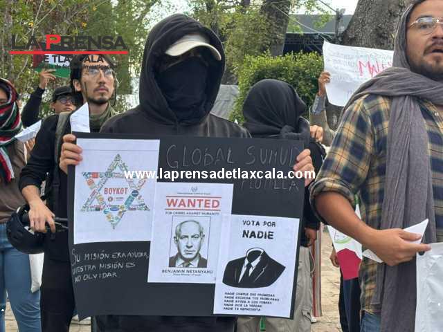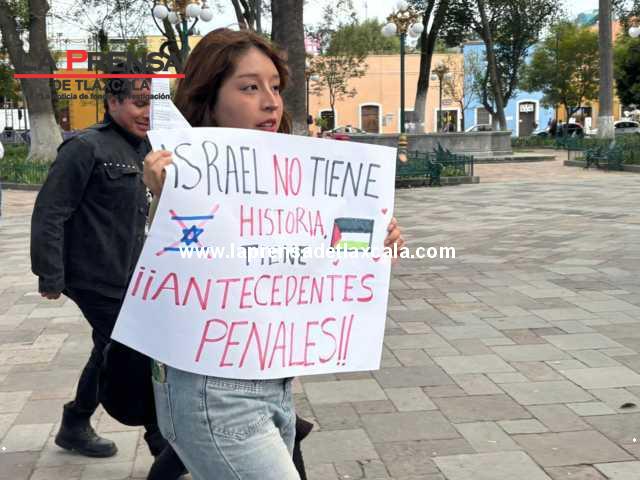 Este día, integrantes de una organización civil se manifestaron en las calles para pronunciarse en contra de lo que calificaron como genocidio en Gaza. Durante la movilización portaron banderas y pancartas con mensajes de solidaridad hacia el pueblo palestino, además de exigir un alto inmediato a la violencia.