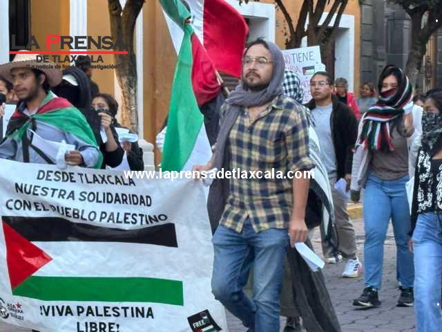 Este día, integrantes de una organización civil se manifestaron en las calles para pronunciarse en contra de lo que calificaron como genocidio en Gaza. Durante la movilización portaron banderas y pancartas con mensajes de solidaridad hacia el pueblo palestino, además de exigir un alto inmediato a la violencia.