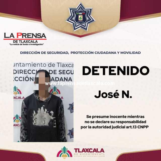 Elementos de la Dirección de Seguridad, Protección Ciudadana y Movilidad del Municipio de Tlaxcala detuvieron a un hombre de 24 años de edad, identificado como José “N”, por alterar el orden público en la capital y durante la intervención confirmaron que el sujeto cuenta con ocho antecedentes policiales y varios procesos por distintos delitos.