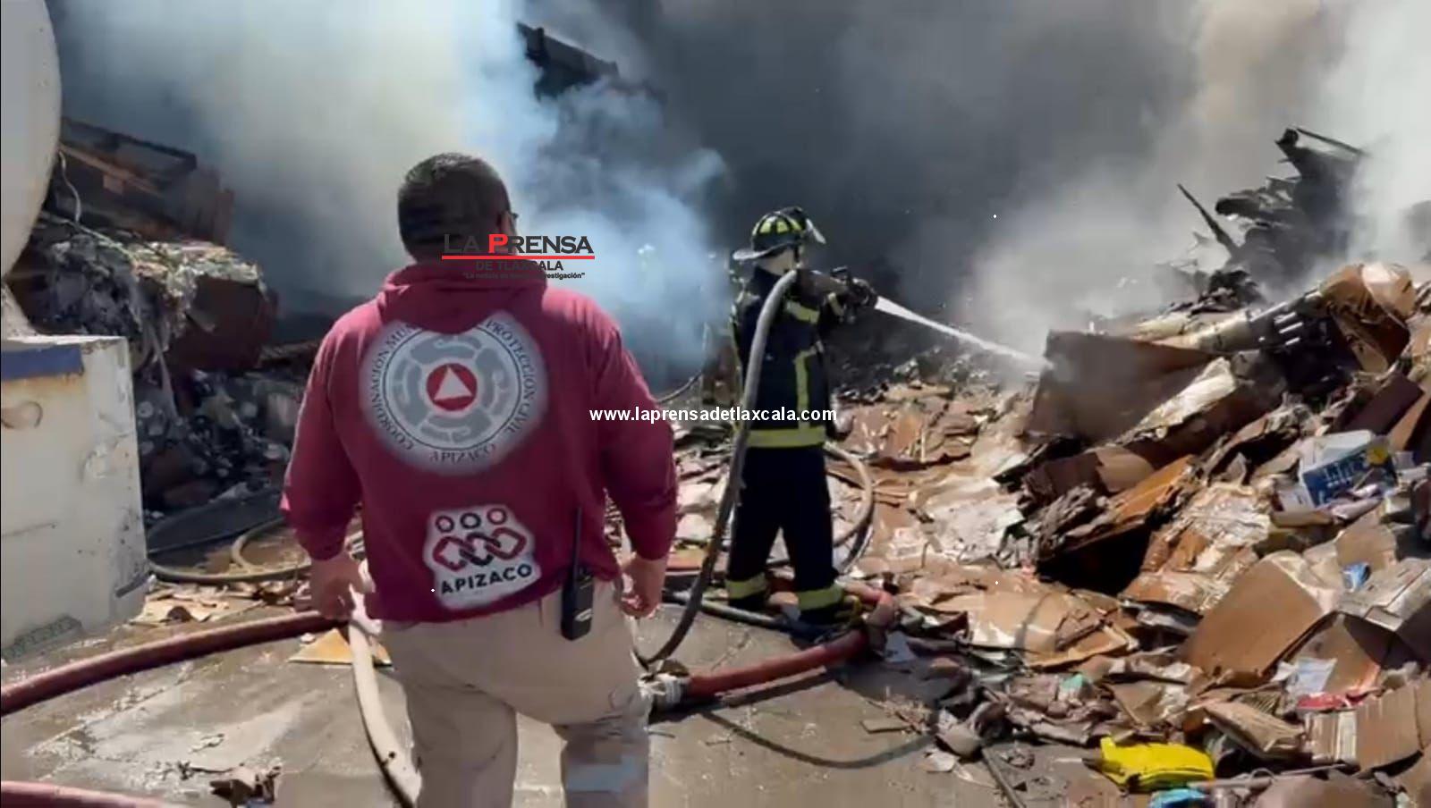 Protección Civil de Apizaco atiende incendio en recicladora de San Isidro