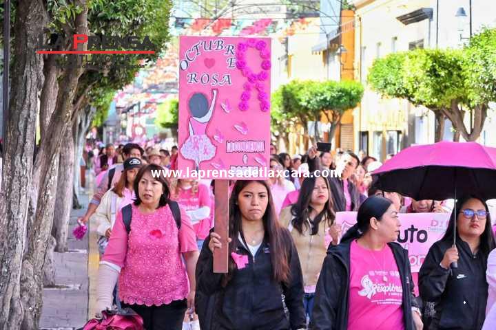 Este día se llevó a cabo en Tlaxcala la tradicional Marcha Rosa, en la que participaron diversas instituciones públicas, educativas y de salud con el propósito de fomentar la detección oportuna y la prevención del cáncer de mama.