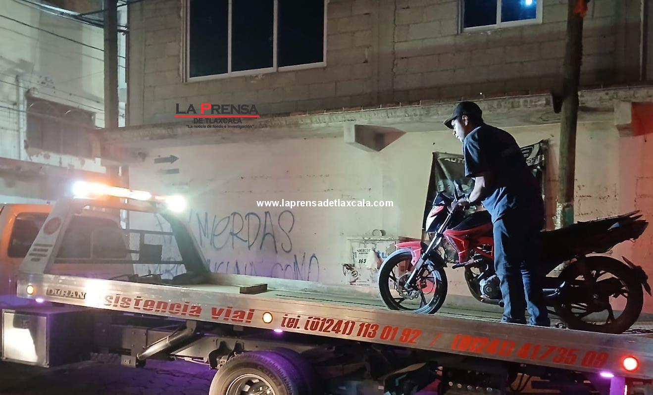 El hallazgo ocurrió en la esquina de las calles Juan Cuamatzi y Emiliano Zapata, donde agentes detectaron una moto roja sin placas y mal estacionada, lo que generó sospechas inmediatas.