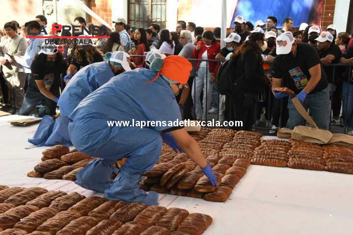 Por tercera ocasión, Tlaxcala rompió un récord Guinness al formar la palabra “Tlaxcala” elaborada con 2 mil 850 piezas de pan de fiesta, una de las tradiciones más representativas del estado.