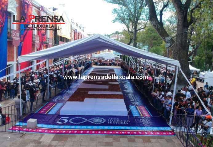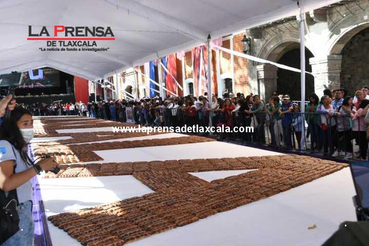Por tercera ocasión, Tlaxcala rompió un récord Guinness al formar la palabra “Tlaxcala” elaborada con 2 mil 850 piezas de pan de fiesta, una de las tradiciones más representativas del estado.
