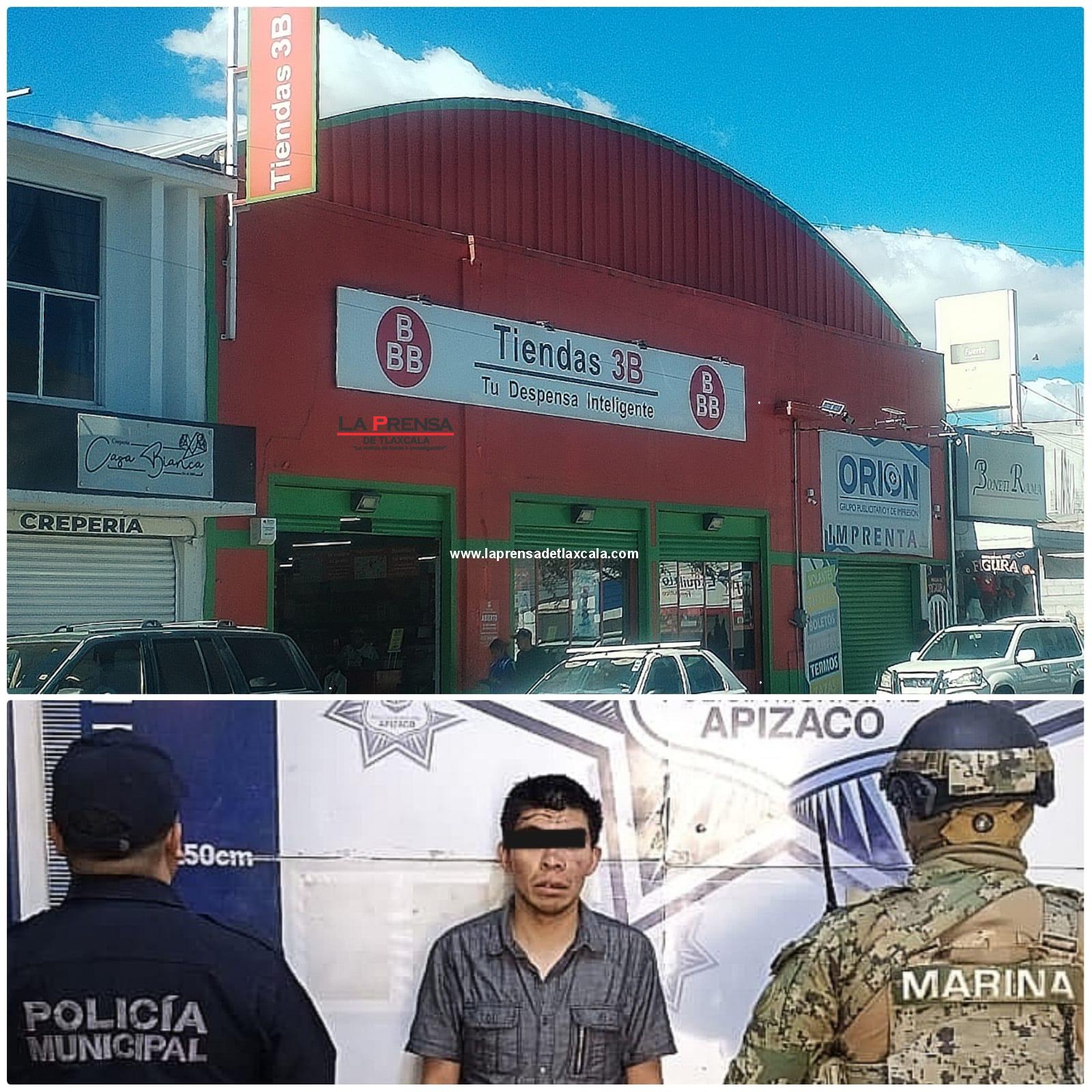 Poco antes del mediodía del lunes en el municipio de Apizaco en el estado de Tlaxcala, elementos policiales municipales y sus pares de la Secretaria de Marina (SEMAR) lograron asegurar y poner a salvó a un sujeto sospechoso de asalto a comercio que por pobladores fue retenido y maltratado; logrando también recuperar parte del botín, con el que un supuesto socio de fechoría alcanzaría a darse a la fuga.