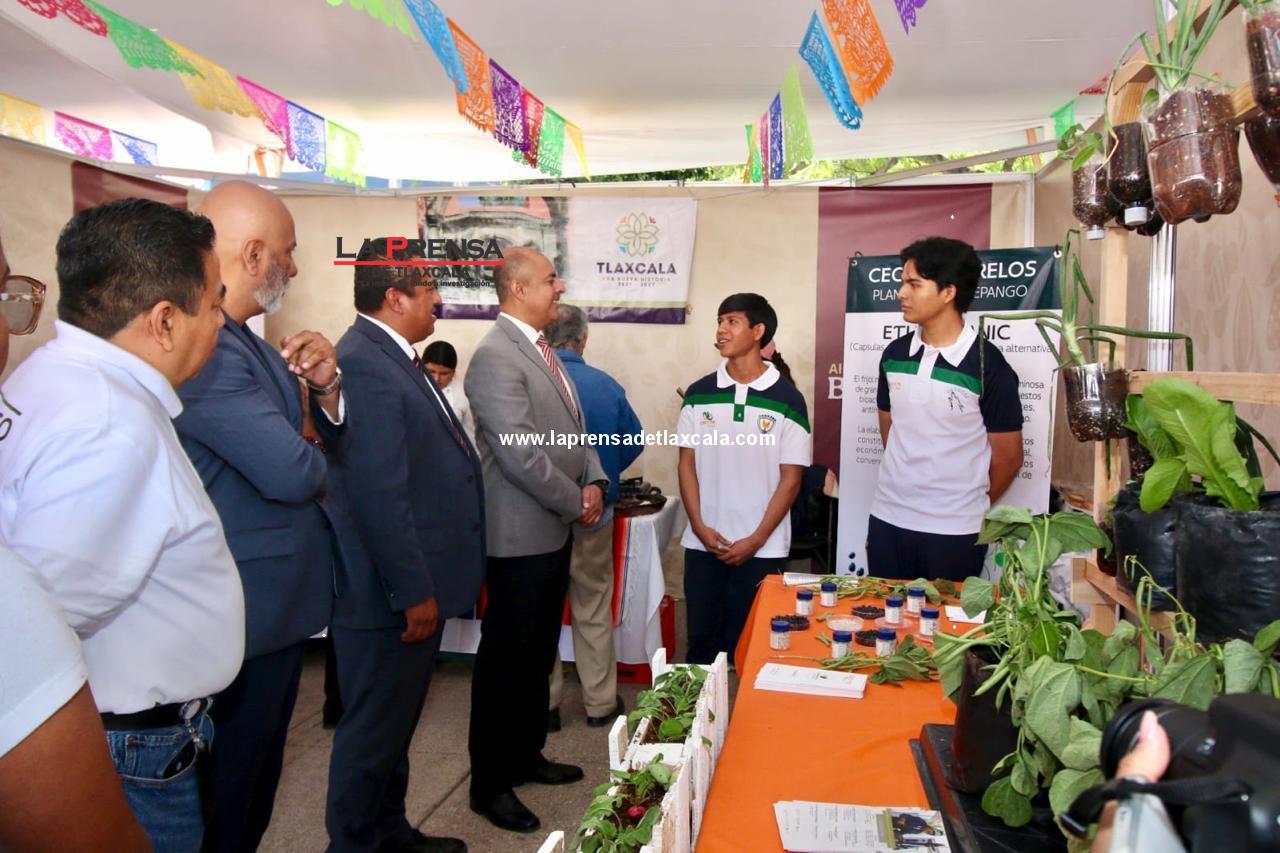 Durante el recorrido por los stands, el coordinador nacional de los CECyTE, Iván Flores Benítez, reconoció el esfuerzo de los estudiantes y dialogó con los representantes de Tlaxcala, destacando la relevancia de la participación de los subsistemas en la promoción de la agrobiodiversidad.