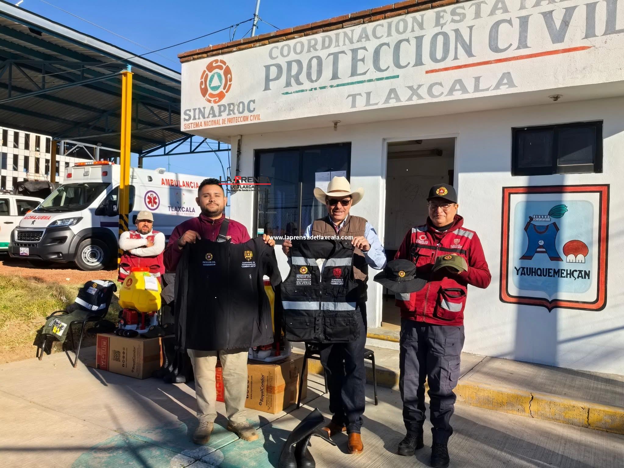 Entrega David Vega Terrazas uniformes a elementos de protección civil de Yauhquemehcan.