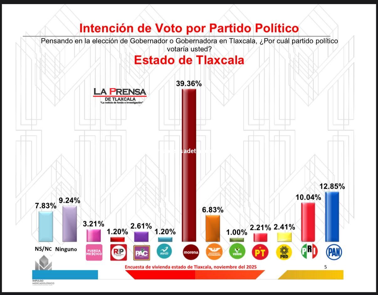 El Partido Acción Nacional en Tlaxcala avanza con paso firme. De acuerdo con los resultados más recientes de la encuesta realizada por Impulso Mercadológico, el PAN registra un crecimiento sostenido y medible en la intención de voto para la elección de Gobernador, reflejando una conexión cada vez más sólida con la ciudadanía y un respaldo creciente a su proyecto político.