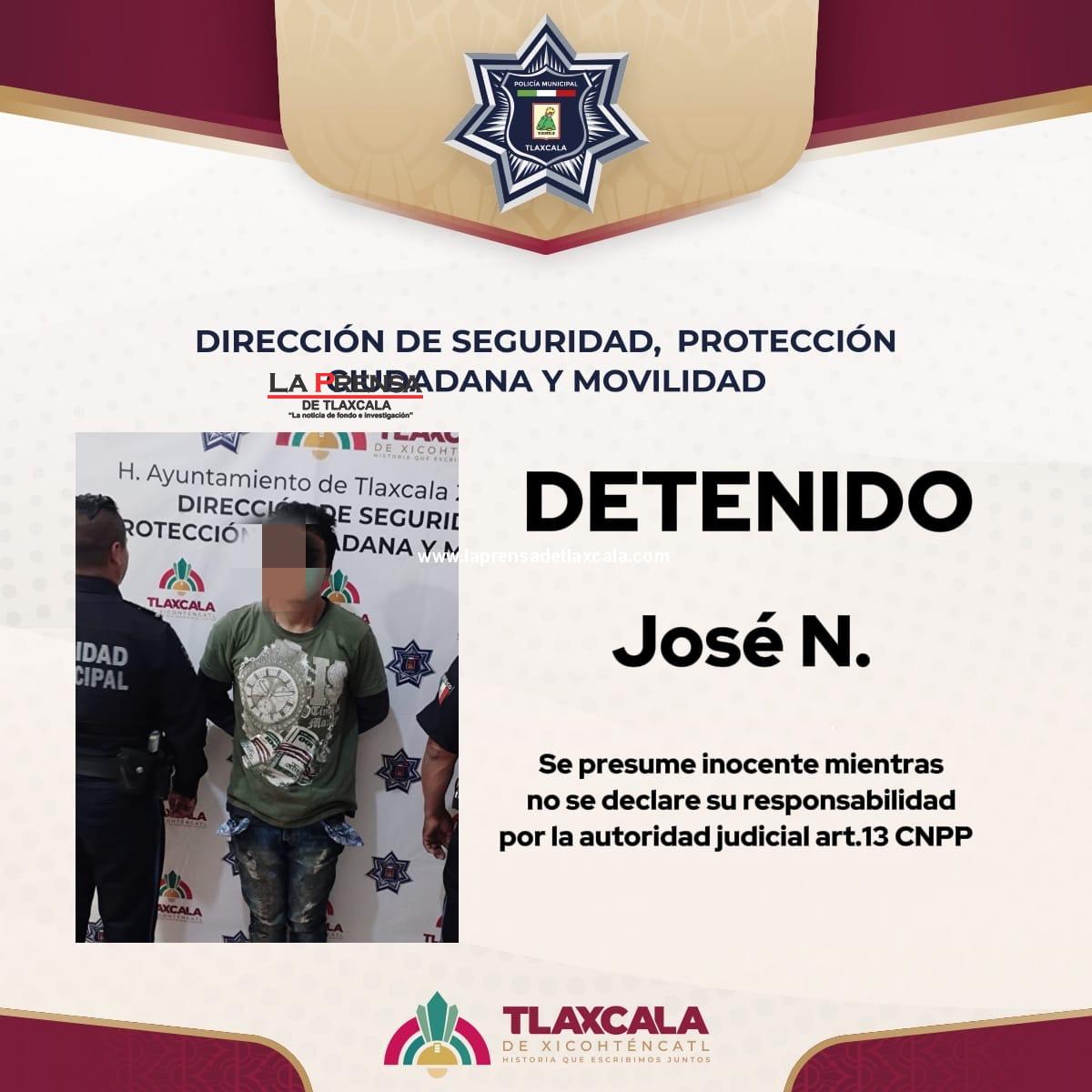Elementos de la Policía Municipal de Tlaxcala aseguraron y pusieron a disposición del Ministerio Público de la Fiscalía General de Justicia del Estado (FGJE) a un hombre identificado como José “N”, de 24 años de edad, señalado por el presunto robo de una computadora en un negocio de venta de dulces, en el centro de la ciudad.