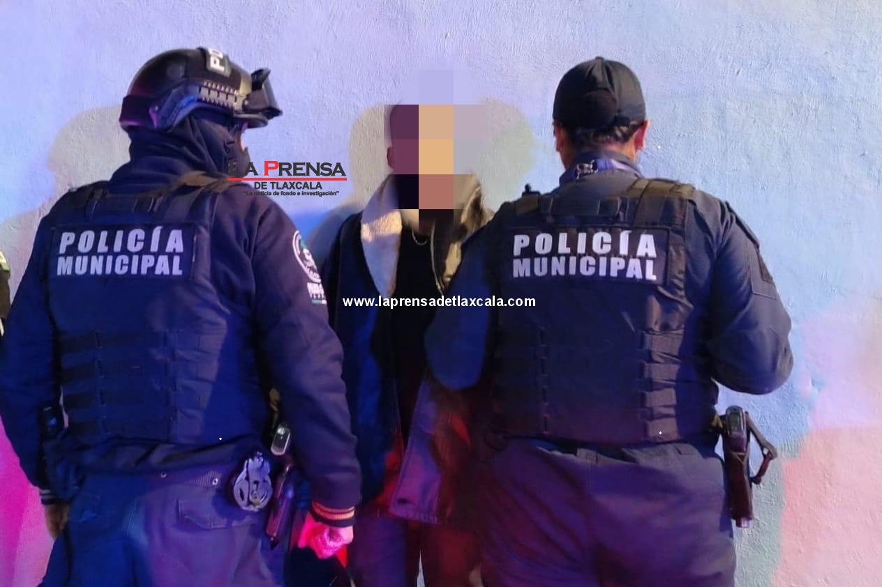 Al aplicar un control preventivo y verificar sus datos en Plataforma México, se confirmó que el sujeto, identificado como Christian “N”, contaba con diversos antecedentes por robo, alteración del orden público y posesión de enervantes, además de una orden de aprehensión vigente emitida por la Fiscalía General de Justicia del Estado de Tlaxcala.