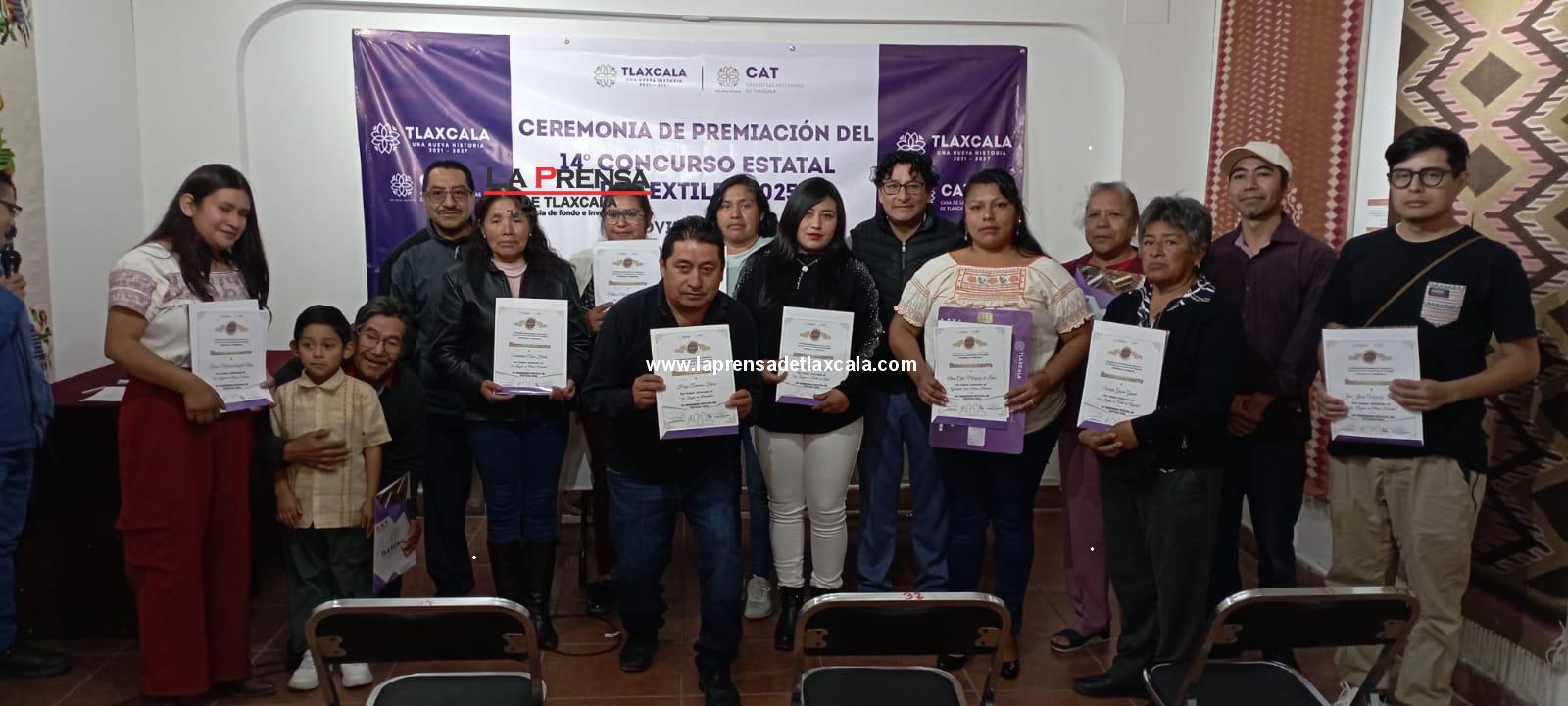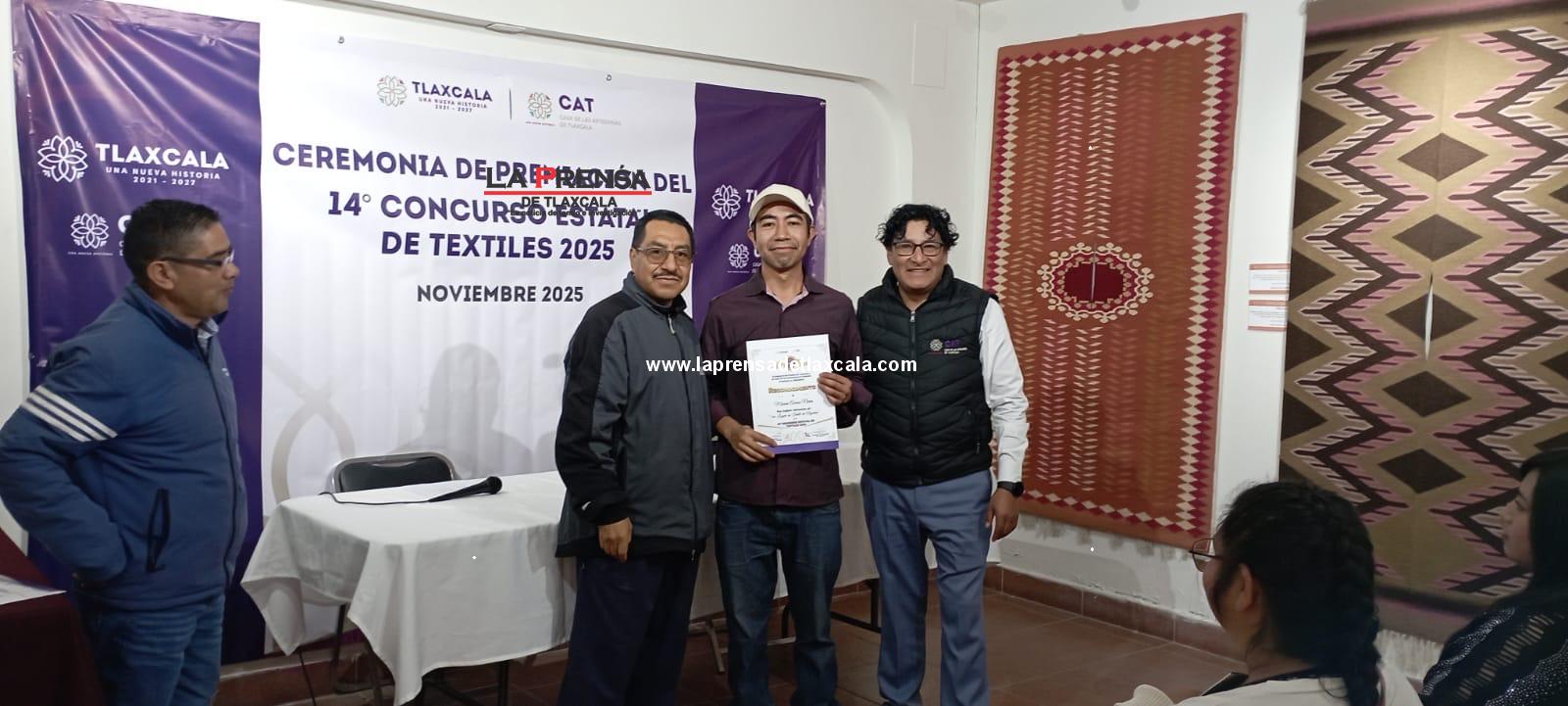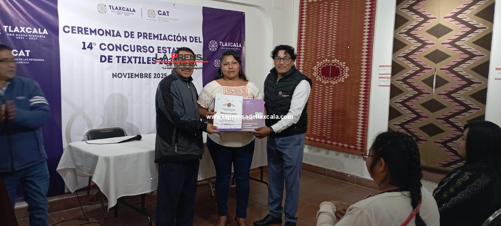 La Casa de las Artesanías de Tlaxcala (CAT) realizó la ceremonia de premiación del 14º Concurso Estatal de Textiles 2025, en la que se reconoció a las y los ganadores de las cuatro categorías del certamen y del máximo galardón.