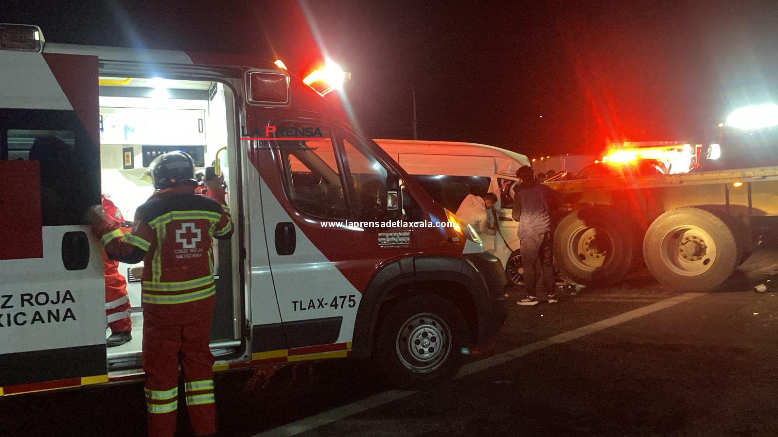 Un conductor de 22 años quedó atrapado entre los hierros retorcidos de su unidad de transporte público tras impactar por alcance la plataforma de un tractocamión, la noche del miércoles en el Libramiento Apizaco-Huamantla, a la altura de la colonia Nuevos Horizontes.