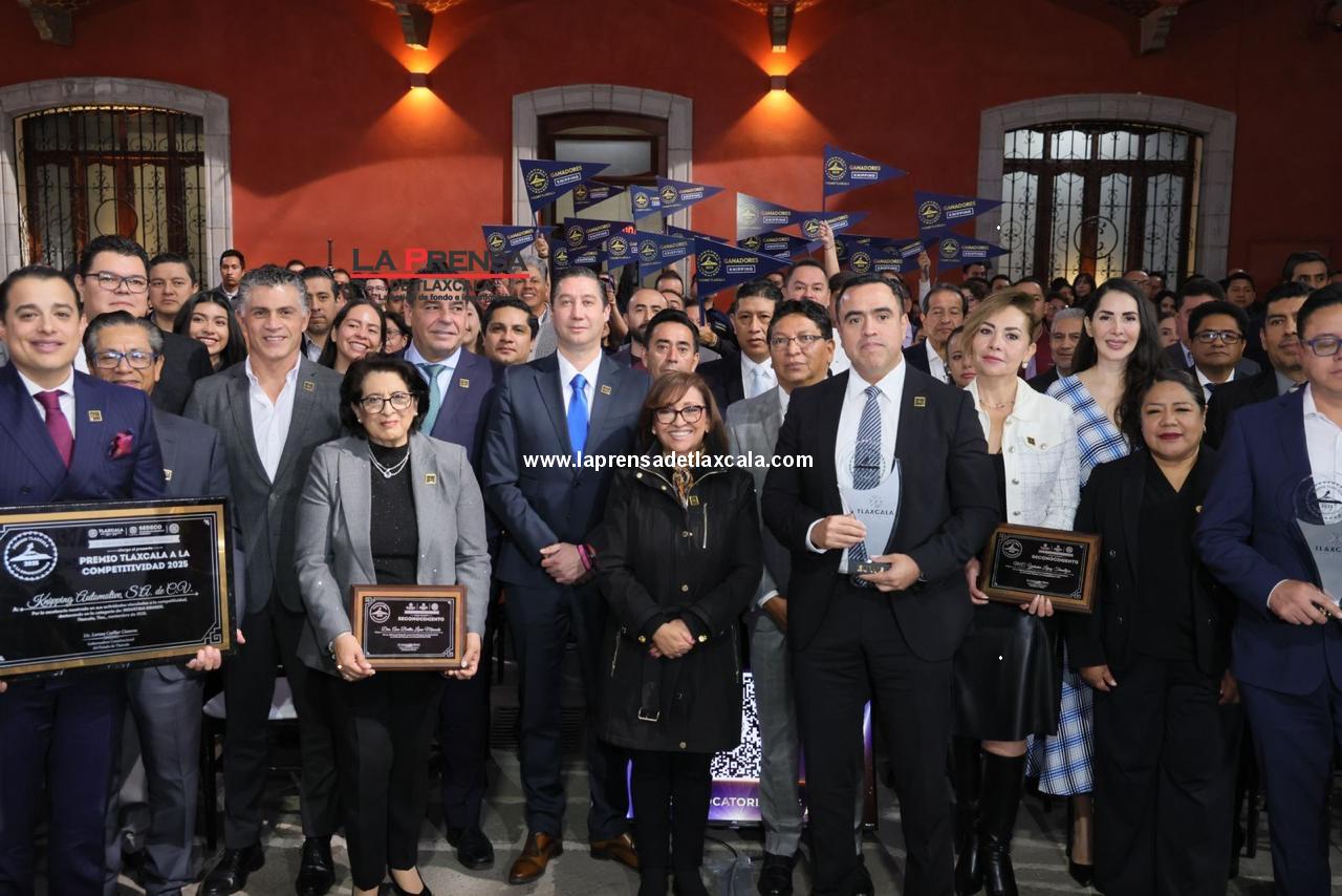 La gobernadora Lorena Cuéllar Cisneros encabezó la ceremonia de entrega del Premio Tlaxcala a la Competitividad 2025, un reconocimiento que distingue a las organizaciones que demostraron excelencia en liderazgo, procesos, innovación, transformación digital, orientación al cliente y valor social, de acuerdo con el Modelo Nacional de Transformación Organizacional.