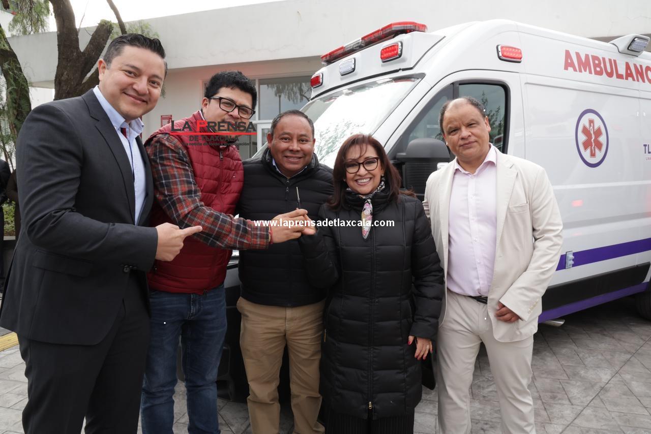 La gobernadora Lorena Cuéllar Cisneros encabezó la entrega de ambulancias a nueve municipios, con una inversión bipartita de 17 millones 910 mil pesos a través del programa “Peso a Peso”, con lo cual se fortalecen la atención prehospitalaria y la capacidad de respuesta para el cuidado de la salud de los tlaxcaltecas, ejes prioritarios de su administración.