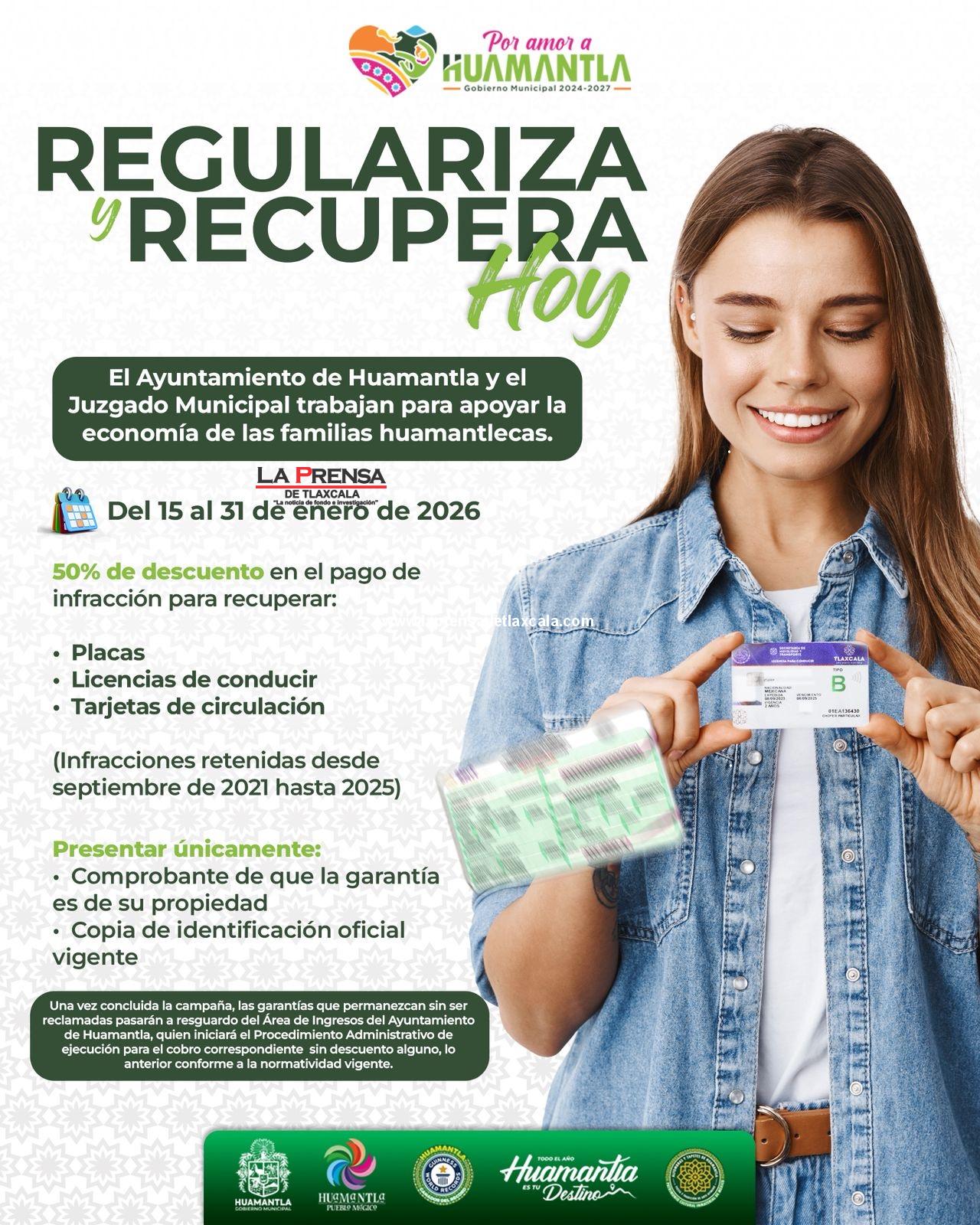 El Gobierno Municipal informa que, una vez concluida la campaña, las garantías que no sean reclamadas pasarán a resguardo del Área de Ingresos del Ayuntamiento de Huamantla, iniciándose el Procedimiento Administrativo de Ejecución para el cobro correspondiente sin aplicar descuento alguno, conforme a la normatividad vigente.