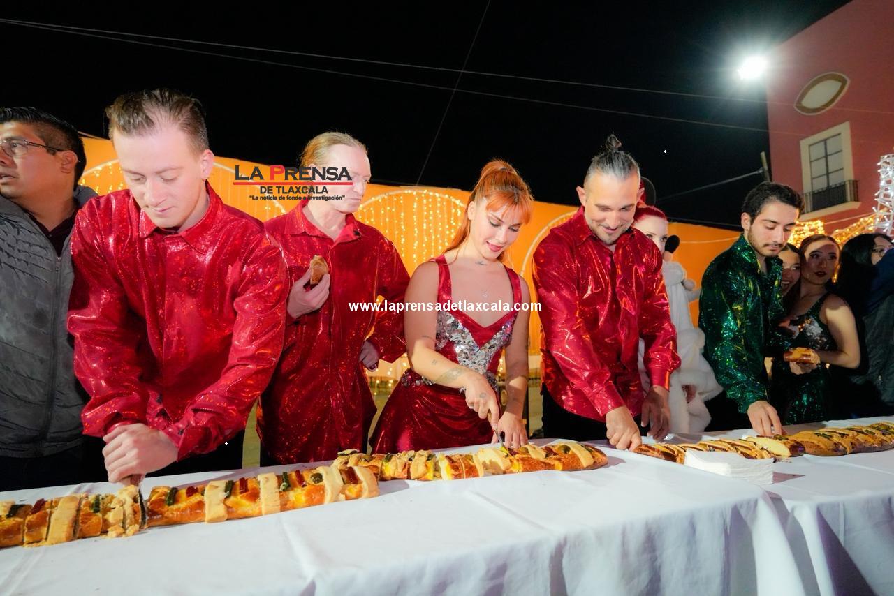 El evento de cierre estuvo enmarcado por el corte de la Rosca de Reyes, elaborada por Fruto y Crema, empresa orgullosamente tlaxcalteca, la cual destacó por su tamaño y sabor, y fue compartida con miles de familias tlaxcaltecas y visitantes que se dieron cita en el Recinto Ferial.