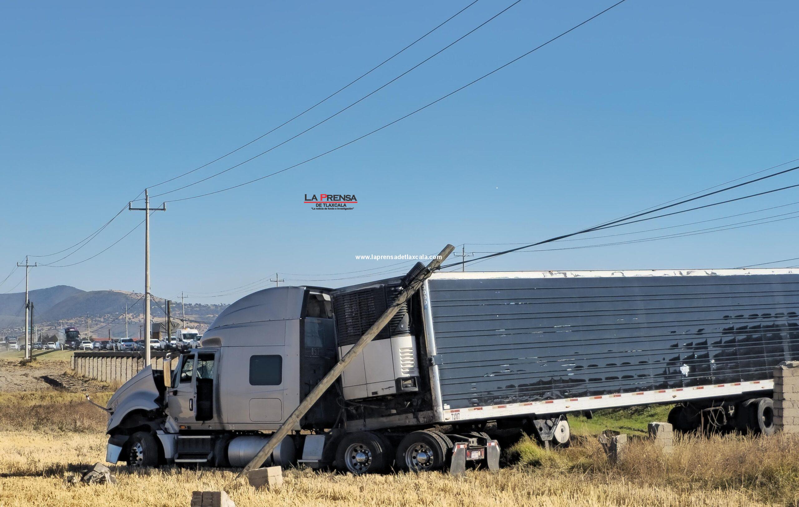 Esta tarde se registró un accidente en la carretera federal México-Veracruz, a la altura de Calpulalpan, donde un tráiler se salió de la carretera y colisionó contra un acueducto y un poste de Telmex.
