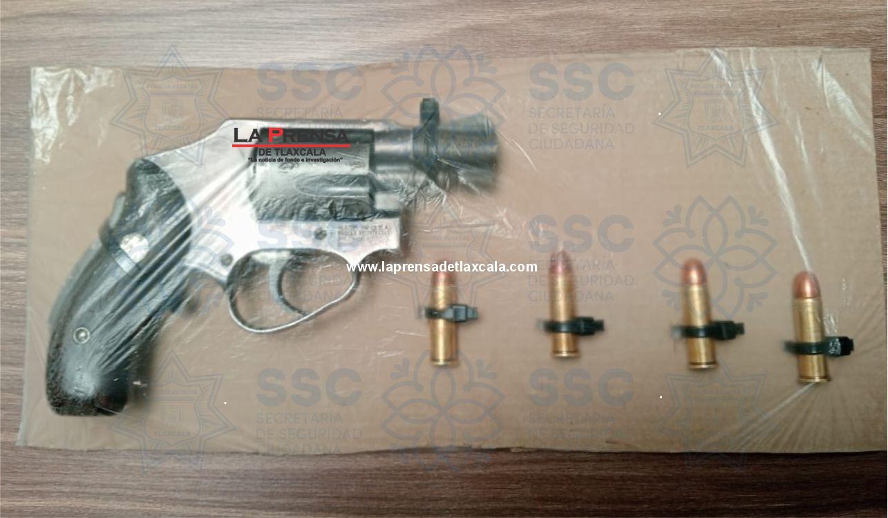 Durante la revisión, los elementos localizaron entre sus pertenencias un arma de fuego corta, calibre .38, así como cuatro cartuchos útiles. Al solicitarle la documentación correspondiente para acreditar la legal portación del arma, el sujeto no pudo acreditar la posesión legal de la misma.