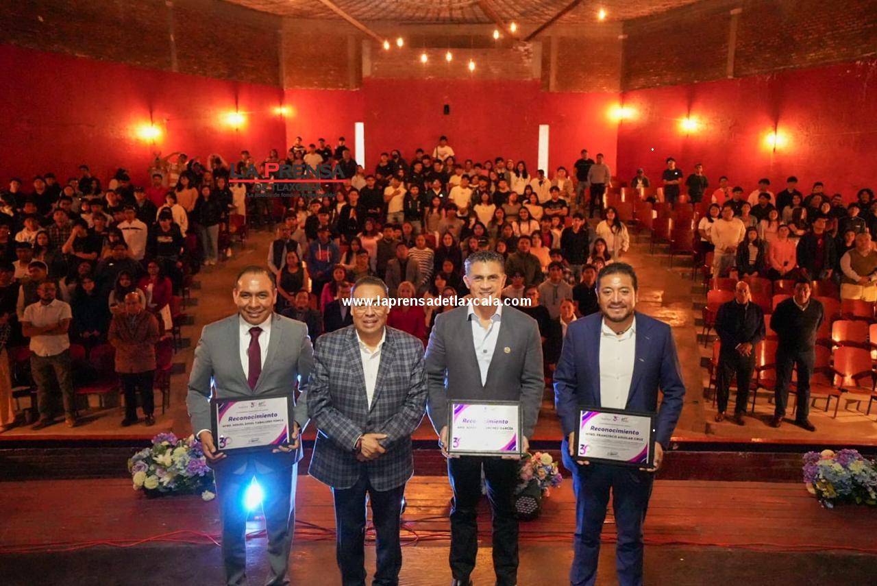 En el Teatro Xicohténcatl, el alcalde reconoció a la ponente por su labor en favor de mujeres que hoy cuentan con mayor protección legal, más visibilidad y más herramientas para defender su dignidad y sus derechos, gracias a la Ley Olimpia.