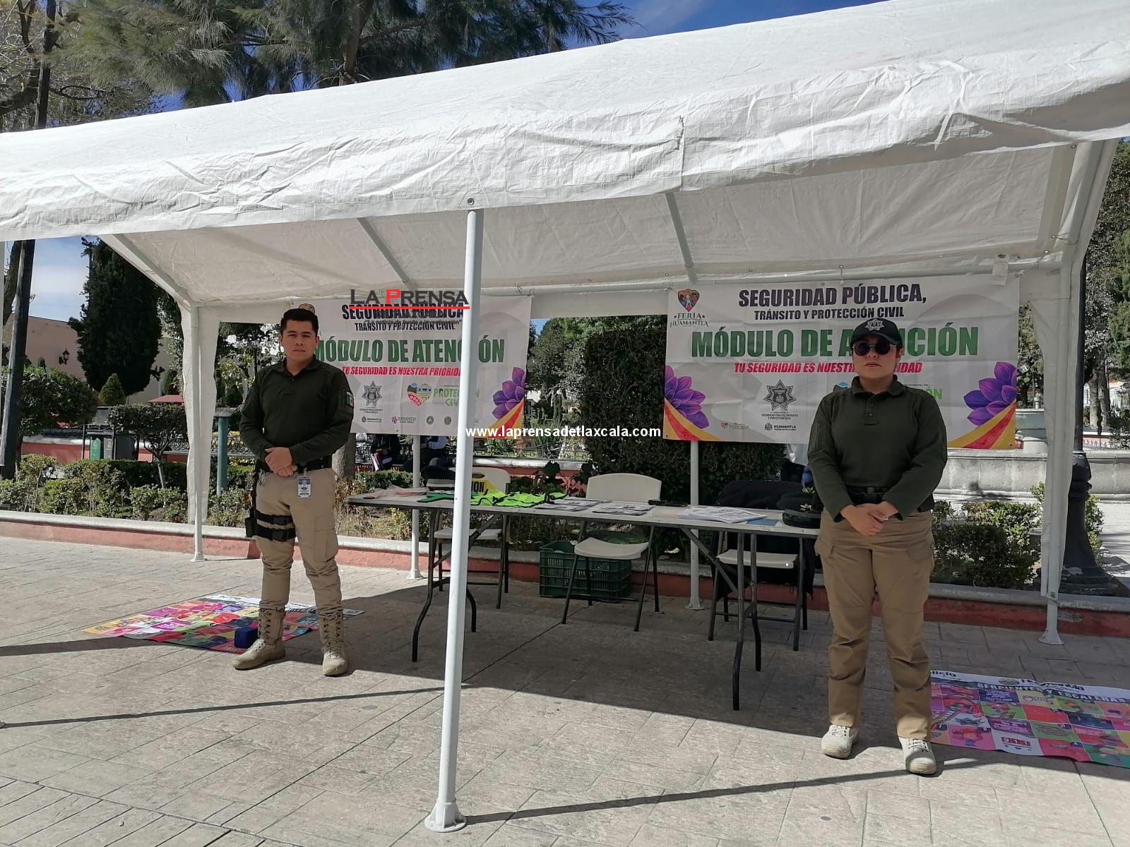 Huamantla, Tlaxcala, a 7 de febrero de 2026.– Con el objetivo de mantener cercanía con la ciudadanía, prevenir conductas delictivas y brindar atención oportuna, la Dirección de Seguridad Pública, Tránsito y Protección Civil de Huamantla implementó un módulo de atención ciudadana en el Parque Juárez.