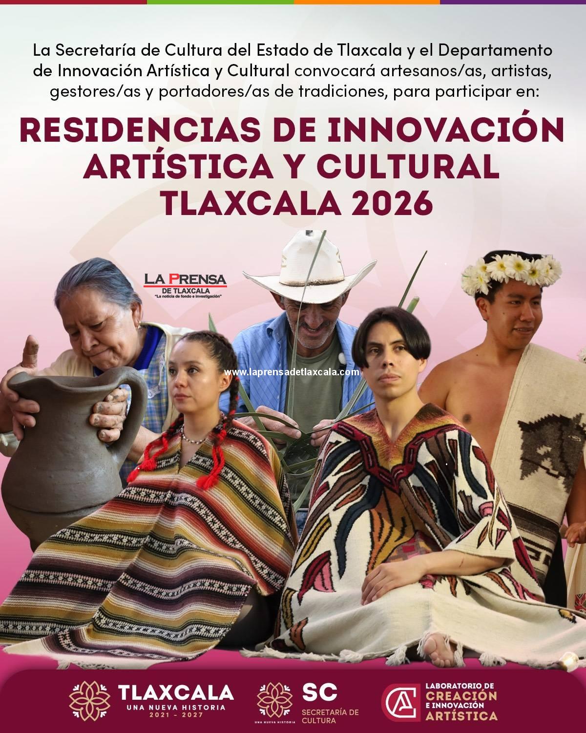 La Secretaría de Cultura del Estado de Tlaxcala lanzó la convocatoria Residencias de Innovación Artística y Cultural Tlaxcala 2026, un programa que ofrecerá estímulos económicos de hasta 25 mil 800 pesos para fortalecer la innovación artística, profesionalizar procesos creativos y generar proyectos con impacto cultural y social en la entidad.