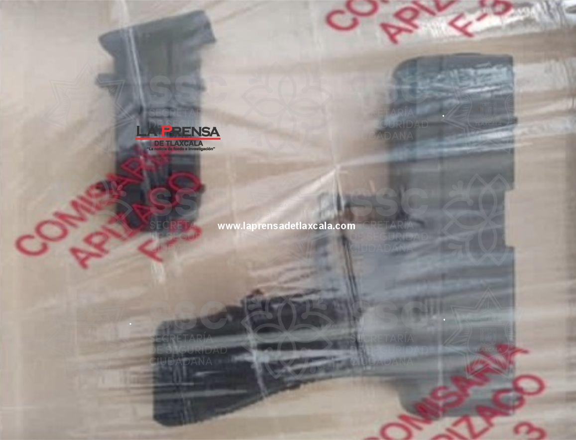 Al efectuar la revisión correspondiente tanto al conductor como al interior del vehículo, los oficiales localizaron un objeto con características similares a un arma de fuego (réplica de arma de fuego), considerado como un objeto óptimo para agredir, por lo que fue asegurado de manera inmediata.