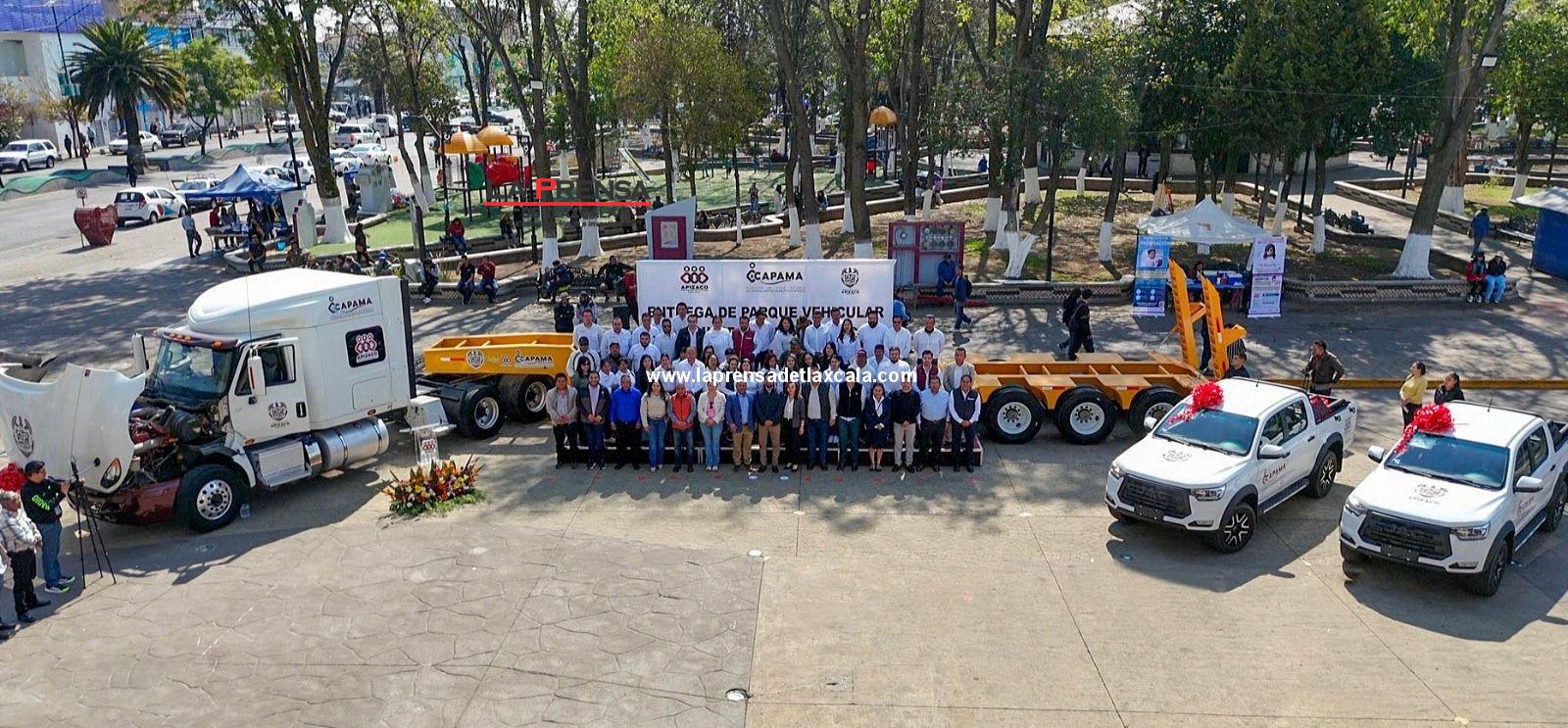 El presidente municipal de Apizaco, Javier Rivera Bonilla, encabezó la entrega de nuevo parque vehicular para la Comisión de Agua Potable y Alcantarillado del Municipio de Apizaco (CAPAMA), con una inversión de 2 millones 812 mil pesos, lo que convierte al municipio en el único del estado en contar con este tipo de maquinaria para el traslado de equipo pesado destinado a obra hídrica.