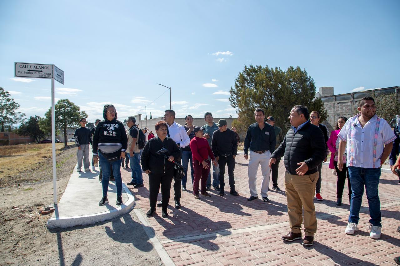 El presidente municipal de Apizaco, Javier Rivera Bonilla, inauguró la calle Caobas en Santa Anita Huiloac, una obra que incluyó pavimentación con adoquín, instalación de drenaje sanitario, ampliación de la red de agua potable, colocación de postes de alumbrado público y balizamiento.