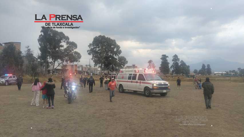 Durante la tarde de este miércoles, se reportan tres menores y un adulto lesionados, después de que un rayo cayera y fueran alcanzados por la onda expansiva, mientras hacían deporte en los campos de Guadalupe Ixcotla, colindantes con la unidad habitacional El Llanito de Santa Ana Chiautempan.