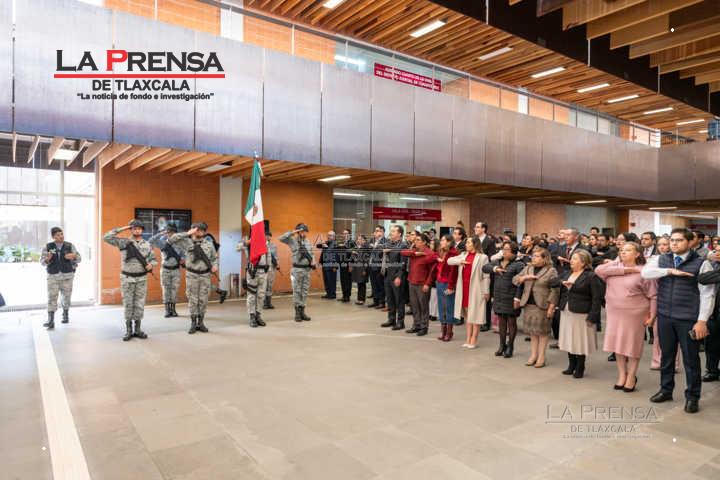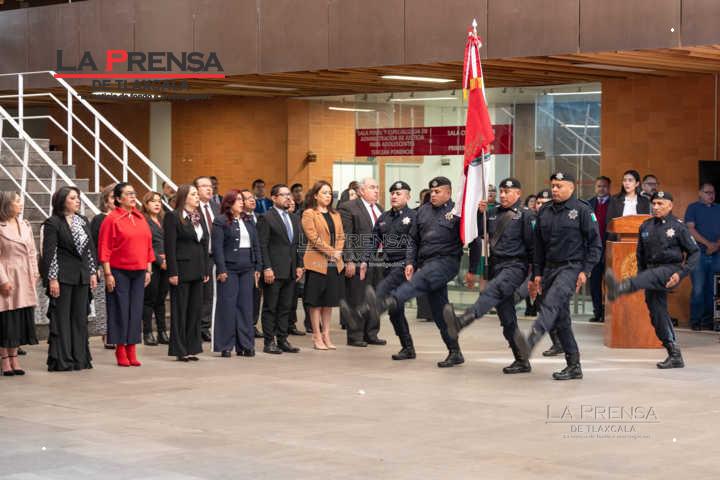 Así lo manifestó durante su mensaje en el homenaje al Lábaro Patrio que se efectuó en las instalaciones de Ciudad Judicial, en el que destacó el trabajo que magistradas, magistrados, consejeras, consejeros, juezas, jueces, así como las y los servidores públicos del Poder Judicial de Tlaxcala realizan desde sus respectivas áreas de trabajo.