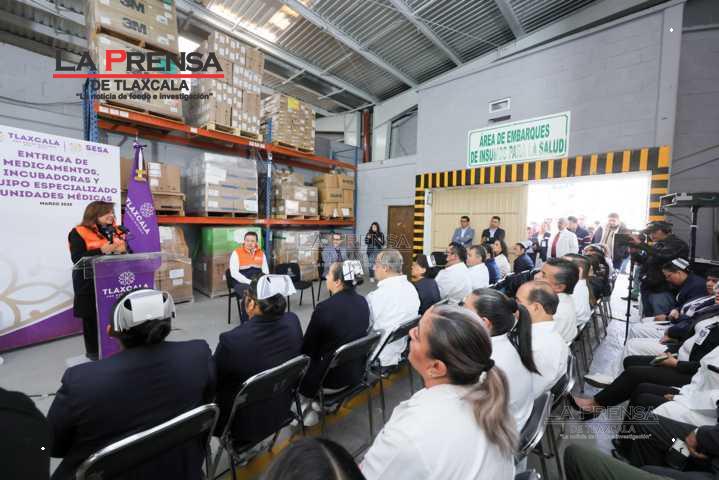 La gobernadora Lorena Cuéllar Cisneros aseguró que con la entrega de medicamentos, incubadoras y material especializado, con una inversión superior a los 30 millones de pesos, su administración honra la palabra y cumple su compromiso de seguir fortaleciendo al sector salud en Tlaxcala.