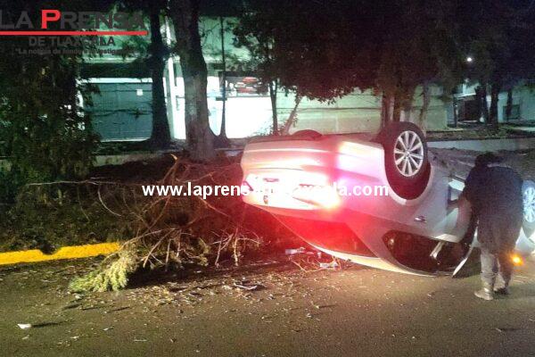 Policía de la capital atendió volcadura en el bulevar del maestro y resguardó la zona para evitar riesgos a conductores y peatones.