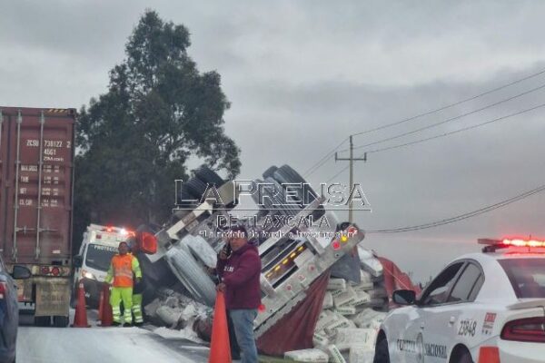Vuelca tráiler sobre la carretera México-Veracruz a la altura de Calpulalpan