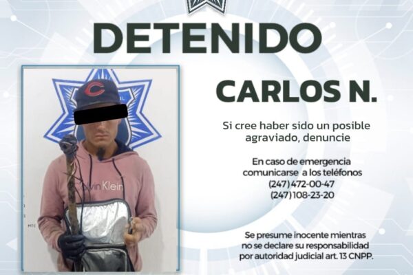 Gracias a las labores de vigilancia constante en las calles de Huamantla, la Policía Municipal detuvo a un hombre en flagrancia mientras intentaba presuntamente robar cableado perteneciente a la Comisión Federal de Electricidad (CFE). Debido a las herramientas que portaba y señalamientos de vecinos, podría tratarse de un sujeto posiblemente responsable de otros delitos como…