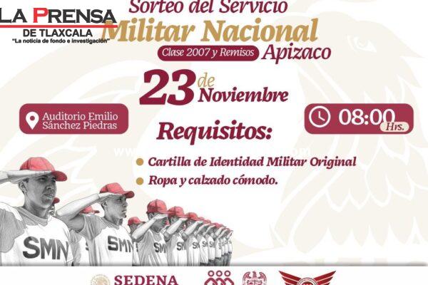 Queda reprogramado el sorteo del Servicio Militar Nacional en Apizaco para el 23 de noviembre.