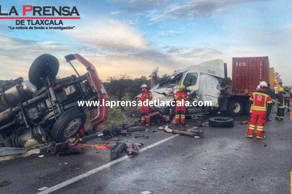 Un fatal accidente ocurrió la madrugada de este miércoles en la autopista Amozoc-Perote, kilómetro 48+500, entre los municipios de Atltzayanca y Cuapiaxtla, Tlaxcala. Alrededor de las 03:30 horas, un camión tipo tortón, cargado con plátanos, colisionó de frente contra un tráiler con dos semi contenedores tras intentar un rebase en el carril contrario. El impacto…