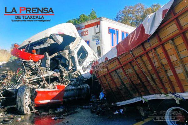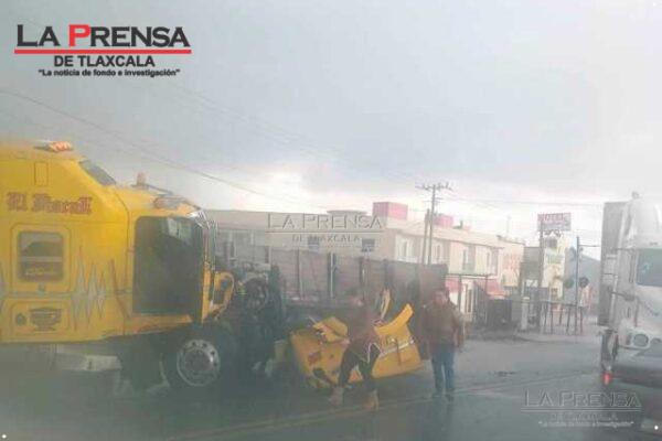 Esta tarde un tráiler amarillo choco contra un vehículo compacto, tipo MG, color vino, sobre la carretera federal Apizaco-Tlaxco, a la altura de las vías de Mena, al lugar ya acuden los cuerpos de emergencia ya que se reporta, por lo menos, una persona lesionada.