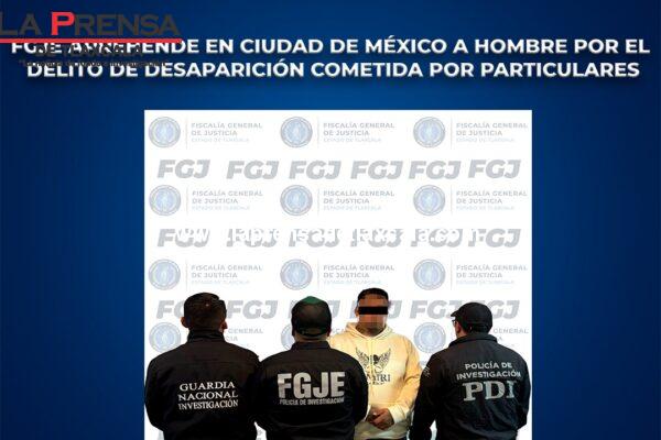 FGJE aprehende en Ciudad de México a hombre por el delito de desaparición cometida por particulares