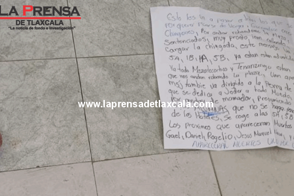 Por: Alberto Jordán Una cartulina con un mensaje amenazante y un presunto corazón, aparentemente de origen animal, fueron localizados esta mañana frente al Colegio de Estudios Científicos y Tecnológicos del Estado (CECyTE) plantel Mazatecochco, ubicado sobre la Avenida de las Industrias, en la colonia Otra Colonia de este municipio. De acuerdo con el reporte policial,…