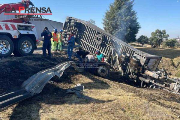 Auto se incrusta en la barra de contención de la autopista Apizaco-Tlaxcala, zona “El Molinito”