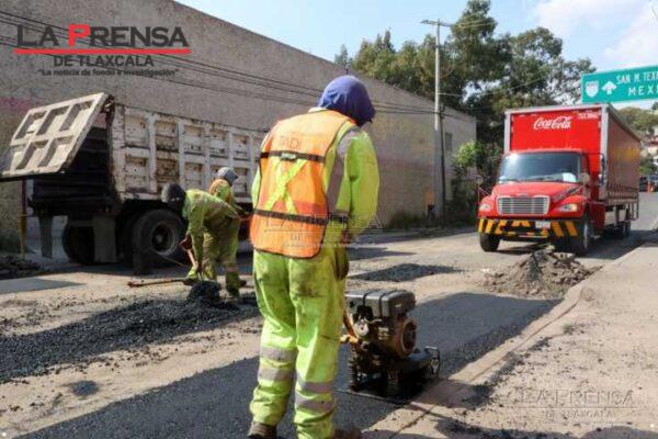 Tlaxcala, Tlax, 23 de enero de 2025. Esta tarde, un grupo de trabajadores realizan trabajos de mantenimiento en la calle Gustavo Arévalo, a un costado del Estadio a Tlahuicole. Los trabajos consisten en cubrir los baches, esto como parte del programa Federal “Bachetón”, por lo que la circulación se mantiene suspendida en la zona; aparentemente…